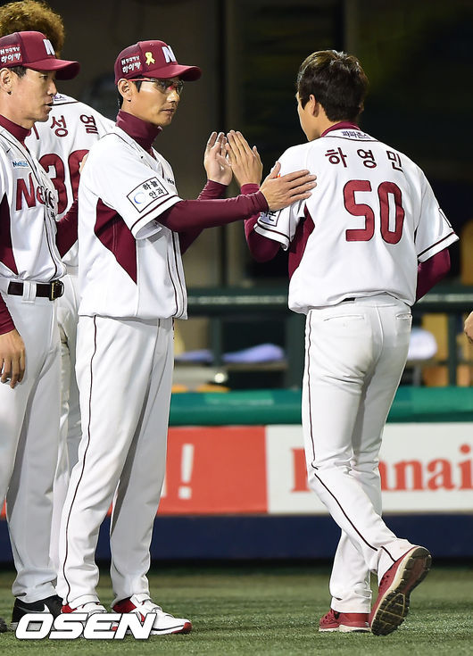 경기를 마치고 넥센 염경엽 감독이 하영민과 하이파이브를 하고 있다./ rumi@osen.co.kr