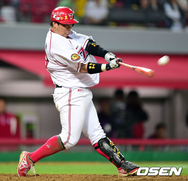 8회말 2사에서 KIA 나지완이 좌월 솔로 홈런을 치고 있다.