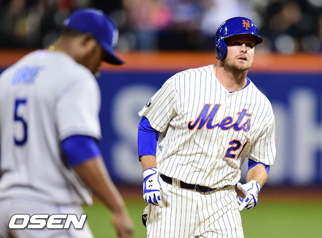 21일(이하 한국시간) 미국 뉴욕주 뉴욕 퀸스 시티 필드에서 열린 '2014 메이저리그' 뉴욕 메츠와 LA 다저스의 경기 6회말 무사 2루 루카스 두다가 투런포를 친 후 베이스를 돌고 있다.