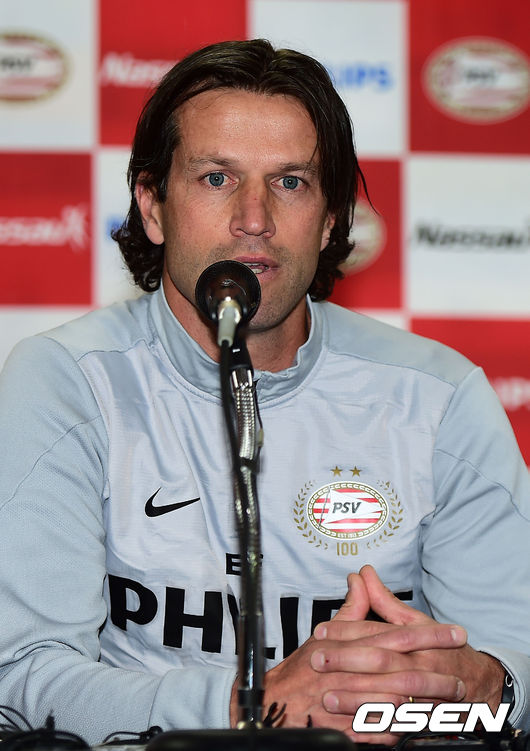 에르네스트 파베르 PSV 수석코치가 질문에 답변하고 있다.