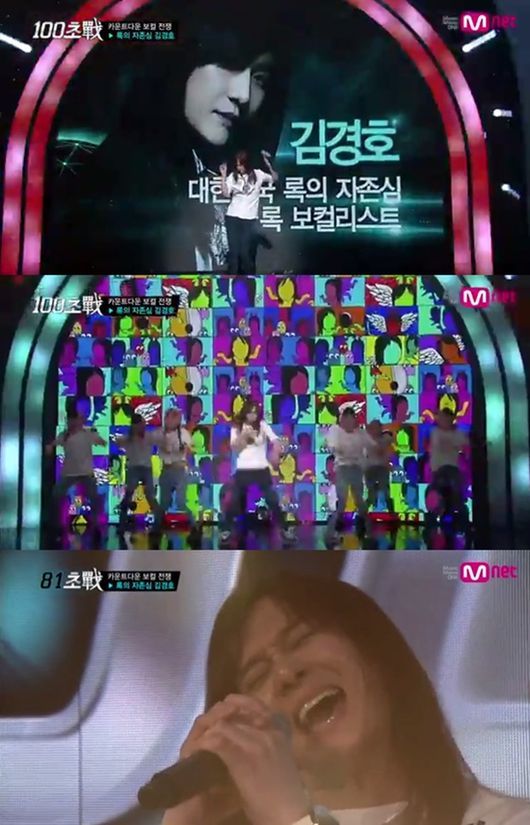 가수 김경호가 케이블채널 엠넷 '100초 전'에서 걸그룹 크레용팝의 '어이'를 열창하며 명불허전 가창력을 입증해 네티즌의 뜨거운 관심을 받고 있다.