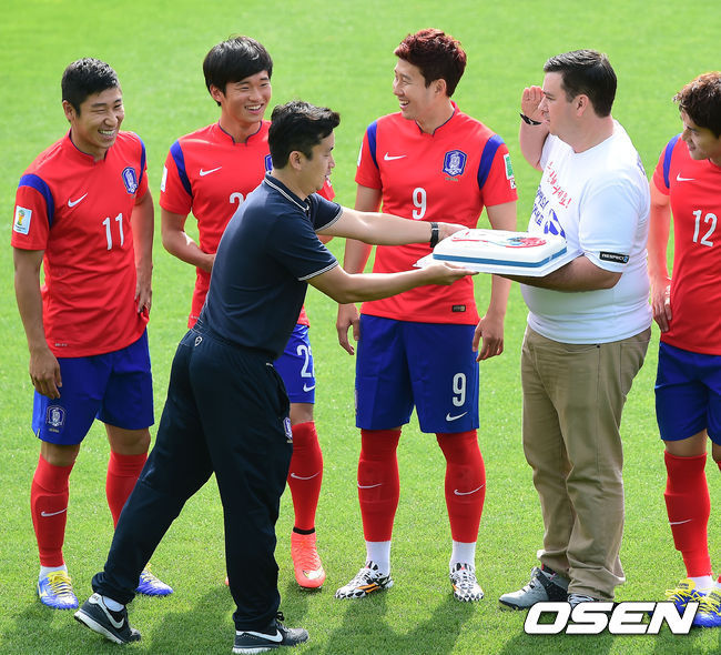 상자의 정체는 포토데이가 모두 끝난 후 밝혀졌다. 한국의 16강 진출을 기원하는 케이크였다. 해밍턴의 아내 정유미씨가 직접 만든 이 케이크에는 한국 대표팀의 선전을 기원하는 의미에서 브라질월드컵 엠블럼 모양이 그려져 있었다. 홍 감독에게 케이크를 전달한 해밍턴은 이후 손흥민(레버쿠젠) 김진수(알비렉스 니가타) 등과 함께 기념촬영 시간을 가졌다. 이근호 역시 기념촬영에 함께했다.