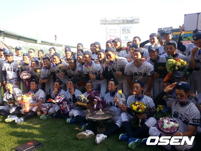 [OSEN=잠실, 선수민 인턴기자] 서울고가 마산용마고를 제압하고, 황금사자기 우승 트로피를 들어올렸다.