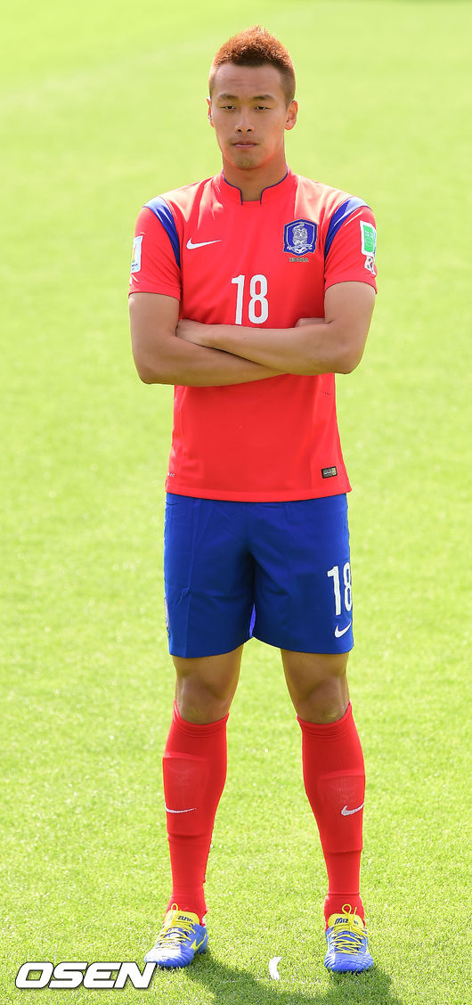 21일 오후 경기도 파주시 파주 NFC(대표팀 트레이닝센터)에서 브라질 월드컵에서 사상 첫 원정 8강에 도전하는 축구 국가대표팀이 포토타임을 갖고 있다. 김신욱이 포즈를 취하고 있다.