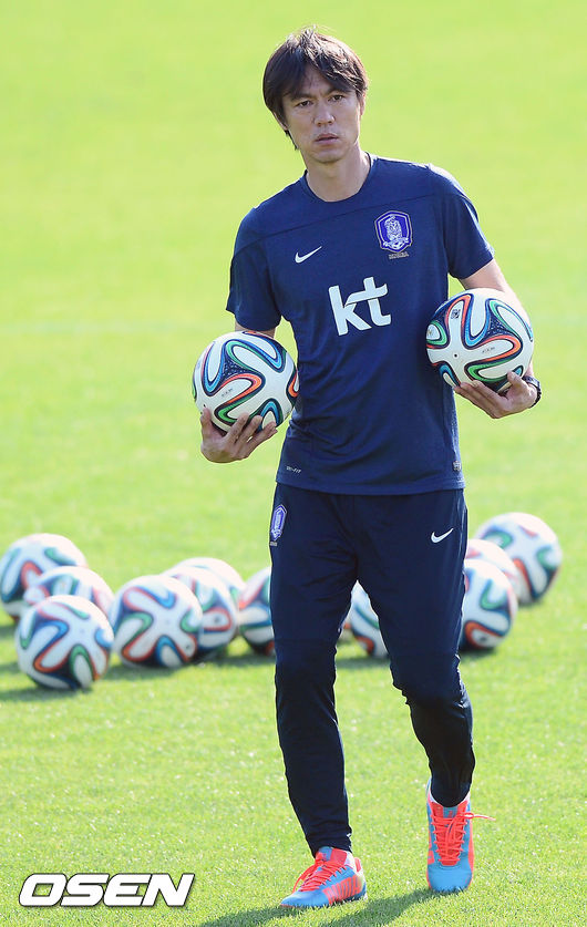 21일 오후 경기도 파주시 파주 NFC(대표팀 트레이닝센터)에서 브라질 월드컵에서 사상 첫 원정 8강에 도전하는 축구 국가대표팀이 훈련을 할때 홍명보 감독이 볼을 운반하고 있다.