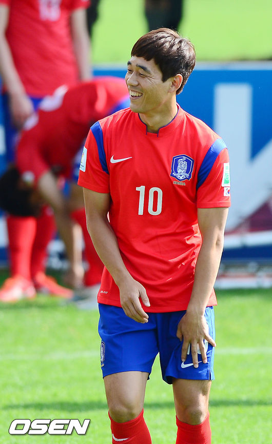 21일 오후 경기도 파주시 파주 NFC(대표팀 트레이닝센터)에서 브라질 월드컵에서 사상 첫 원정 8강에 도전하는 축구 국가대표팀이 훈련을 할때 박주영이 환하게 웃고 있다.