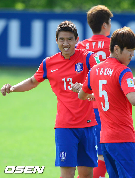 21일 오후 경기도 파주시 파주 NFC(대표팀 트레이닝센터)에서 브라질 월드컵에서 사상 첫 원정 8강에 도전하는 축구 국가대표팀이 훈련을 할때 구자철이 몸을 풀고 있다.