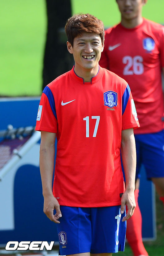 21일 오후 경기도 파주시 파주 NFC(대표팀 트레이닝센터)에서 브라질 월드컵에서 사상 첫 원정 8강에 도전하는 축구 국가대표팀이 훈련을 할때 이청용이 환하게 웃고 있다.