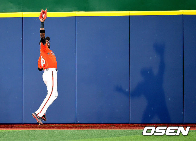 3회말 넥센 공격 선두타자로 나선 이성열의 잘맞은 타구를 한화 중견수 피에가 멋지게 점프해 잡아내고 있다.