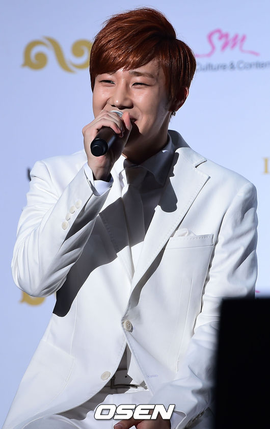 21일 오후 서울 잠실학생체육관에서 진행된 그룹 인피니트 컴백 기자회견 및 쇼케이스에서 인피니트 성규가 소감을 말하고 있다.