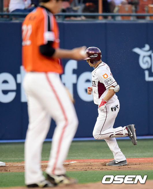 4회말 넥센 공격 선두타자로 나선 이택근이 추격의 중월 솔로포를 날리고 그라운드를 돌고 있다.