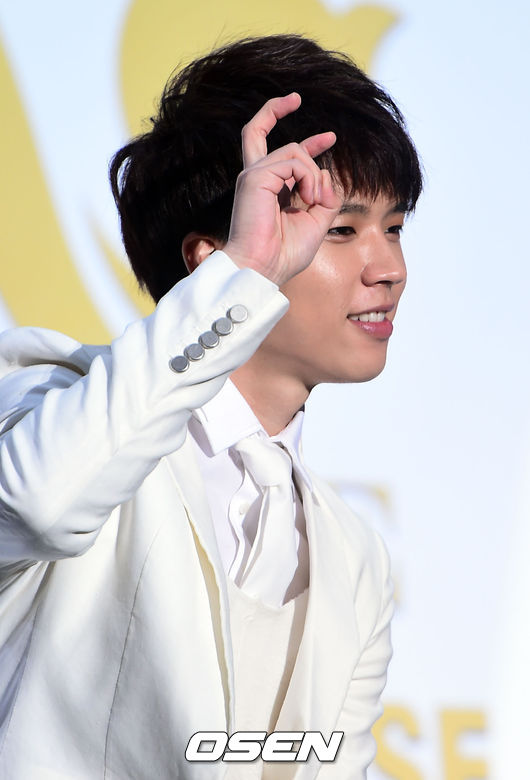 21일 오후 서울 잠실학생체육관에서 진행된 그룹 인피니트 컴백 기자회견 및 쇼케이스에서 인피니트 우현이 취재진을 향해 포즈를 취하고 있다.