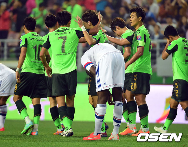 전반 전북 이재성이 추가골을 넣은 뒤 동료들과 기뻐하고 있다.