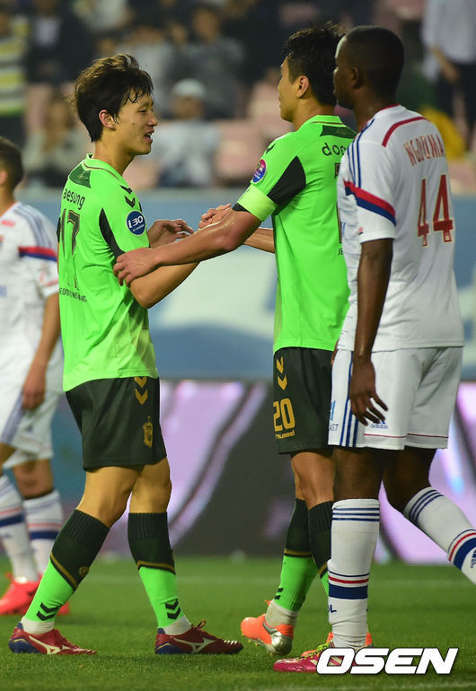 최강희 감독이 지휘하는 전북은 21일 전주월드컵경기장서 열린 현대자동차 초청 친선경기 올림피크 리옹과 홈경기서 한교원과 이재성의 연속골에 힘입어 2-0으로 승리를 거뒀다. 지난해 7월 리옹에서 열린 친선경기서 1-2로 패배했던 전북은 이날 승리로 패배의 아픔을 되갚아주는데 성공했다.