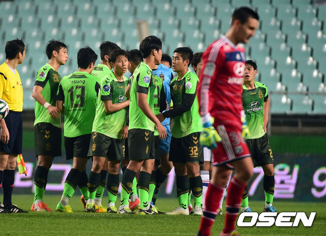 최강희 감독이 지휘하는 전북은 21일 전주월드컵경기장서 열린 현대자동차 초청 친선경기 올림피크 리옹과 홈경기서 한교원과 이재성의 연속골에 힘입어 2-0으로 승리를 거뒀다. 지난해 7월 리옹에서 열린 친선경기서 1-2로 패배했던 전북은 이날 승리로 패배의 아픔을 되갚아주는데 성공했다.