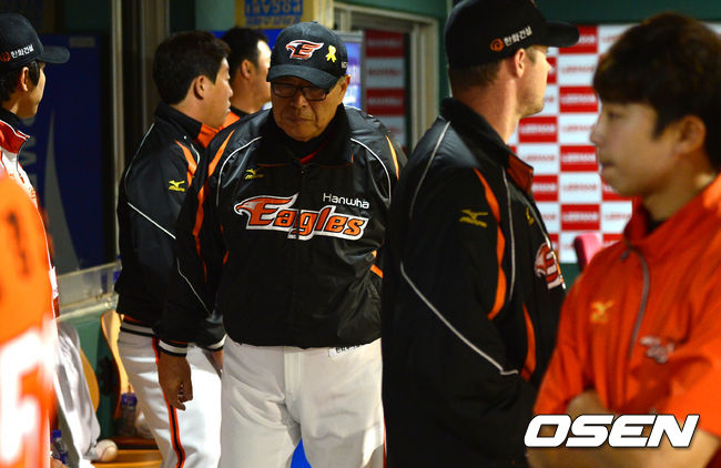 6회초 한화 공격 2사 2루 상황 윤석민의 좌익선상으로 흐르는 타구가 안타로 선언됐다. 이에 격렬히 항의하던 한화 김응룡 감독이 선수단 철수를 선언했고 이에 심판진은 감독 퇴장 조치를 시행했다. 경기장을 빠져나가는 한화 김응룡 감독.