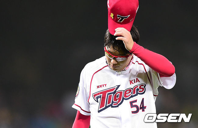 7회초 1사 2루에서 KIA 양현종이 마운드를 내려가며 아쉬워하고 있다.
