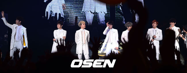 21일 오후 서울 잠실학생체육관에서 진행된 그룹 인피니트 컴백 쇼케이스에서 그룹 인피니트가 팬들을 향해 손짓하고 있다.