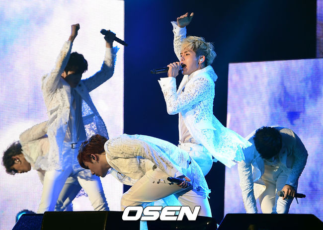 21일 오후 서울 잠실학생체육관에서 진행된 그룹 인피니트 컴백 쇼케이스에서 그룹 인피니트가 멋진 무대를 펼치고 있다.