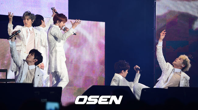 21일 오후 서울 잠실학생체육관에서 진행된 그룹 인피니트 컴백 쇼케이스에서 그룹 인피니트가 멋진 무대를 펼치고 있다.
