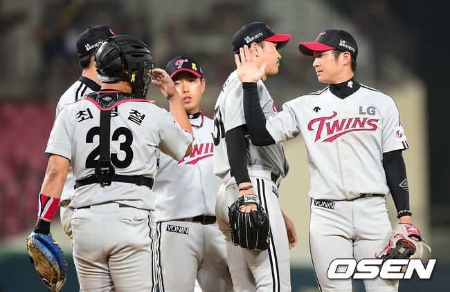 경기 종료 후 LG 선수들이 승리의 기쁨을 나누고 있다./sunday@osen.co.kr