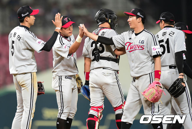 경기 종료 후 LG 선수들이 승리의 기쁨을 나누고 있다./sunday@osen.co.kr