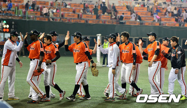 한화 선수들과 코칭스태프가 하이파이브를 나누고 있다./dreamer@osen.co.kr
