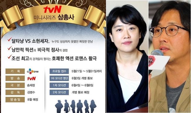 드라마 '나인' '인현왕후의 남자'를 히트시켰던 김병수 PD와 송재정 작가가 또 다시 의기투합해 관심을 집중된 '삼총사'는 지난 21일 온라인을 통해 배우의 프로필 접수를 시작, 동시에 오디션 일정 및 작품 소개글로 눈길을 끌었다.