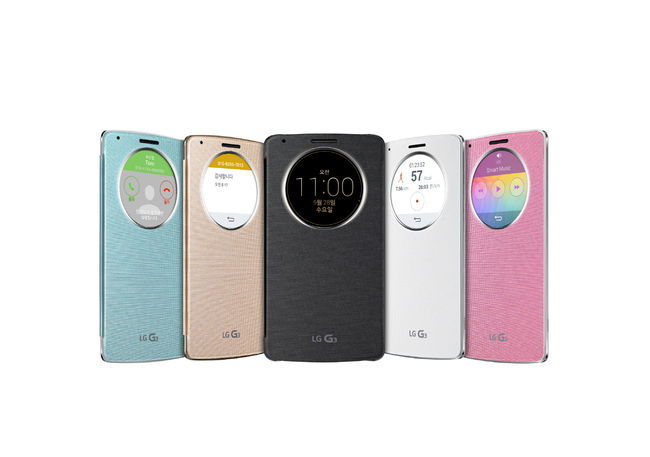 ‘LG G3’ 전용 ‘퀵서클 케이스’는 메탈릭 블랙, 실크 화이트, 샤인 골드, 아쿠아 민트, 인디언 핑크 등 총 5가지 색상으로 출시되며 무선 충전도 지원한다.