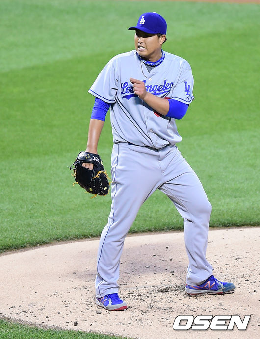 22일(이하 한국시간) 미국 뉴욕주 뉴욕 퀸스 시티 필드에서 열리는 '2014 메이저리그' 뉴욕 메츠와 LA 다저스의 경기 류현진이 마운드에서 투구가 조금 빠졌다는 제스쳐를 취하고 있다.