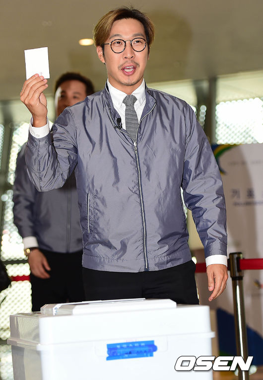 22일 오전 서울 동대문디자인플라자에 마련된 투표소를 찾은 무한도전 멤버 하하가 투표함에 투표를 하기 앞서 포즈를 취하고 있다./dreamer@osen.co.kr