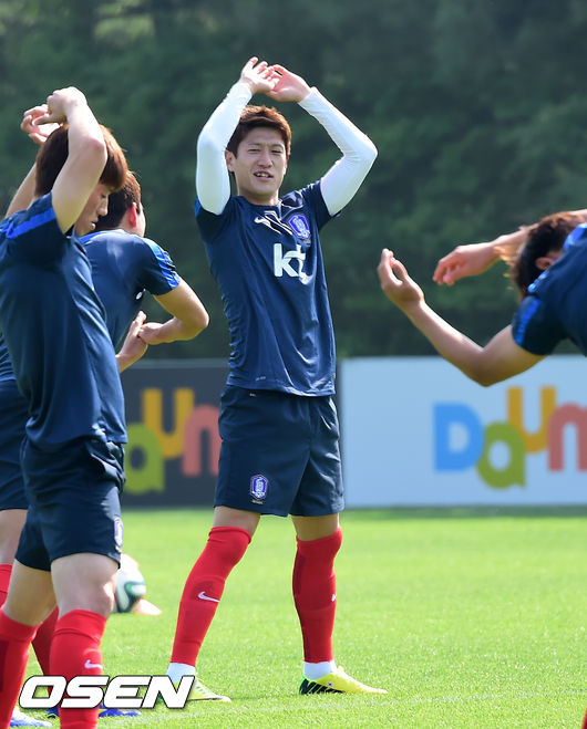 22일 오전 경기도 파주시 파주 NFC(대표팀 트레이닝센터)에서 브라질 월드컵에서 사상 첫 원정 8강에 도전하는 축구 국가대표팀이 훈련을 하고 있다. 이청용이 몸을 풀고 있다.