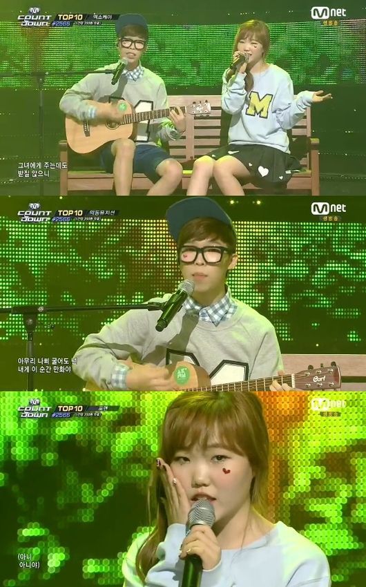 이날 악동뮤지션은 얼굴에 하트 스티커를 붙이고 깜찍한 노래에 맞는 상큼한 안무로 시선을 끌었다.