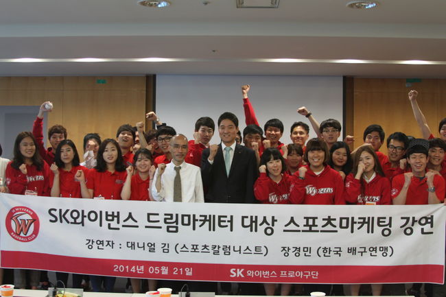 SK는 드림마케터의 스포츠마케팅 역량을 강화하고 진로 선택에 도움을 주고자 이번 강연회를 마련했다. 이번 강연회는 대니얼 김 SPOTV 해설위원과 장경민 한국배구연맹 홍보마케팅팀 대리가 강연을 맡았다.