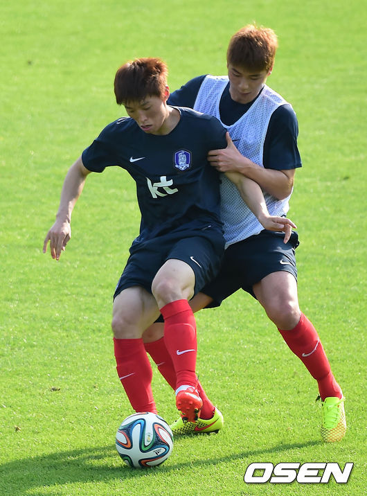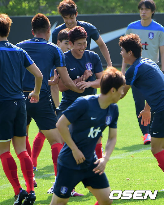 홍명보 감독이 이끄는 축구 국가대표팀은 22일 경기도 파주의 국가대표 트레이닝센터(NFC)에서 공개 훈련을 가졌다. 윤석영(퀸스파크 레인저스)을 제외한 22명의 대표팀 중 오른쪽 허벅지 부상으로 훈련 합류가 어려운 하대성(베이징 궈안)과 오른쪽 발목 부상 통증이 남아있는 김진수(알비렉스 니가타) 그리고 합류한지 얼마 되지 않은 김영권(광저우 에버그란데)을 제외한 19명이 이날 훈련을 소화했다.