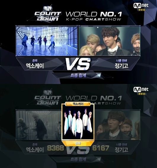 엑소-K는 22일 방송된 케이블채널 Mnet '엠카운트다운'에서 지난주에 이어 2주 연속 1위를 차지했다.