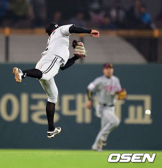 3회말 무사에서 LG 오지환이 KIA 강한울의 타구를 놓치고 있다.