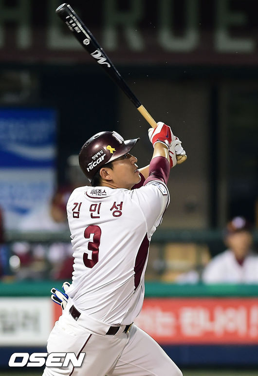 22일 오후 서울 목동구장에서 열린 ‘2014 한국야쿠르트 세븐 프로야구’ 넥센 히어로즈와 한화 이글스의 경기, 4회말 1사 주자 1,3루 넥센 김민성이 우익수 희생플라이로 1타점을 올리고 있다.