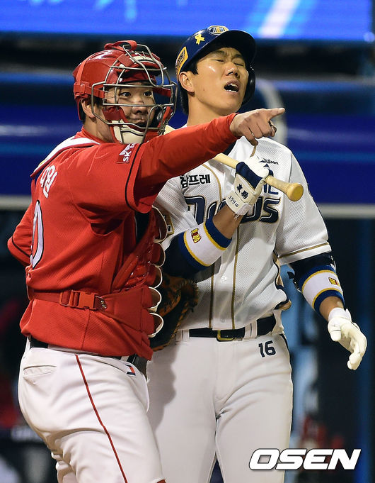 8회말 2사 1,2루 NC 모창민이 포수 스트라이크 낫아웃으로 아웃 당한 뒤 아쉬워하고 있다.
