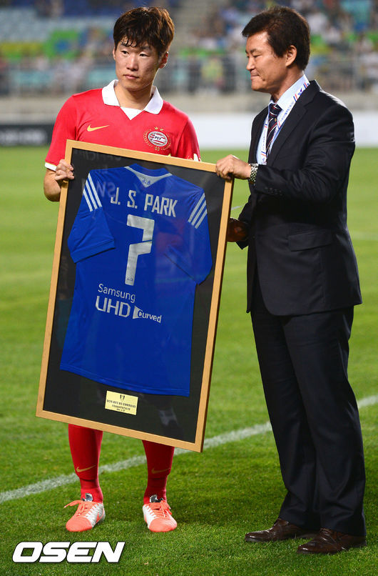 이날 51분을 뛴 박지성은 그라운드를 종횡무진 누비는 강철체력과 특유의 킬패스 등 환상적인 경기력으로 팬들의 기대에 보답했다. 이에 수원 구단과 팬들도 뜻깊은 선물을 마련했다. 수원 구단은 하프타임에 박지성을 수원의 명예선수로 위촉하고 수원 유니폼을 선물했다.