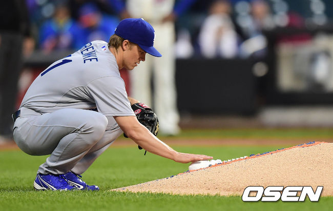 23일(이하 한국시간) 미국 뉴욕주 뉴욕 퀸스 시티 필드에서 열린 '2014 메이저리그' 뉴욕 메츠와 LA 다저스의 경기 1회말 그레인키가 피칭 준비를 하고 있다.
