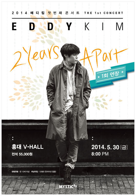 에디킴의 첫 단독콘서트 ‘투 이어즈 어파트’는23일, 30일 금요일 두 차례에 걸쳐 홍대 브이홀(V-HALL)에서 개최된다.