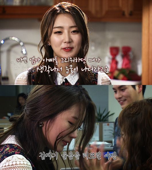 그러나 이 모습을 지켜보던 수빈은 갑자기 눈물을 펑펑 쏟기 시작했다. 수빈은 속마음 인터뷰에서 "어린 시절에 항상 부모님이 바빴다. 늘 엄마, 아빠를 그리워하던 때가 생각나 울컥했다"며 설수현의 삼남매를 보며 자신의 어린 시절이 떠올랐다고 눈물의 이유를 밝혔다.