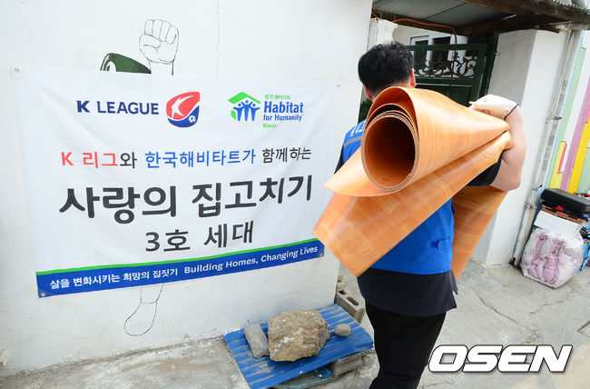 이날 봉사활동에는 권오갑 총재와 신태용 K리그 홍보대사를 포함해 연맹 임직원 등이 참석해 기초생활수급자와 장애인 가정, 독거노인 등 3세대의 주거환경 개선을 위해 도배와 장판 교체, 창문 교체, 단열작업 등 집 고치기 활동으로 진행됐다.
