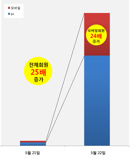 한편, 디바이스별로 분석한 수치에 따르면 모바일 참여율이 압도적인 것을 확인할 수 있다. 이날 MBC 모바일 서비스(m.imbc.com)의 신규 가입자 수는 전일 대비 무려 24배가 증가했으며, MBC 모바일 페이지뷰(PV: 사용자가 사이트 내 웹페이지를 열람한 횟수) 역시 4배의 증가세를 기록했다.