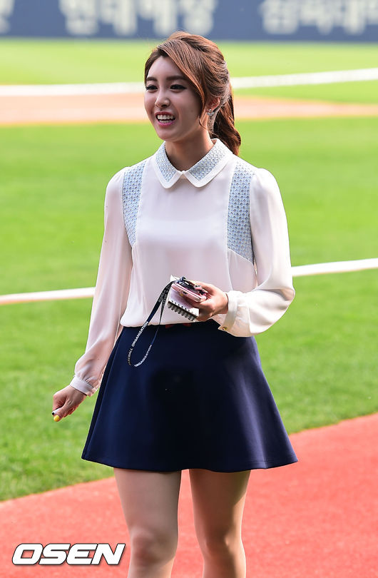 23일 오후 서울 잠실구장에서 열린 2014 한국야쿠르트 세븐 프로야구 두산 베어스와 한화 이글스의 경기전 홍재경 아나운서가 인터뷰를 마치고 걸어가고 있다.