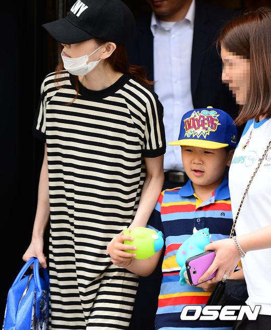 23일 오후 서울 용산구 한남동 비이커 플래그쉽 스토어에서 진행된 '필립스, 디즈니 조명 컬렉션' 팝업 스토어 오픈행사에 참석한 윤민수 배우자 김민지와 아들 윤후가 손을 잡고 스토어를 나오고 있다.