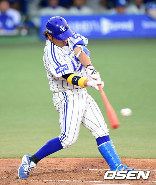 1회말 2사 1,2루에서 삼성 박석민이 좌전안타를 치고 있다.