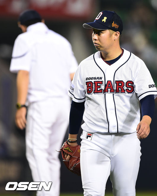 두산 선발 유희관,'6이닝 못버티고 교체'