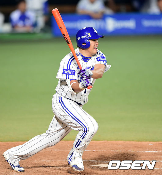 6회말 1사 2,3루에서 삼성 박한이가 우전 2타점 적시타를 치고 있다.